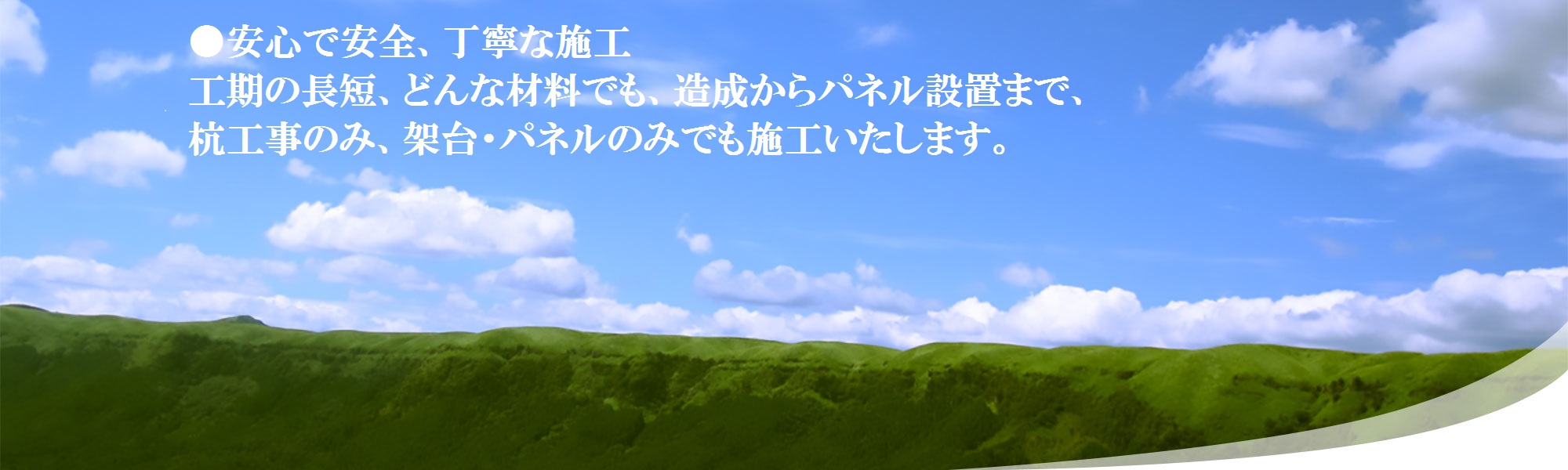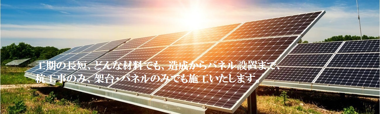 全国各地へ出張可能、工期の長短、どんな材料でも、造成からパネル設置まで、杭工事のみ、架台・パネルのみでも施工いたします。